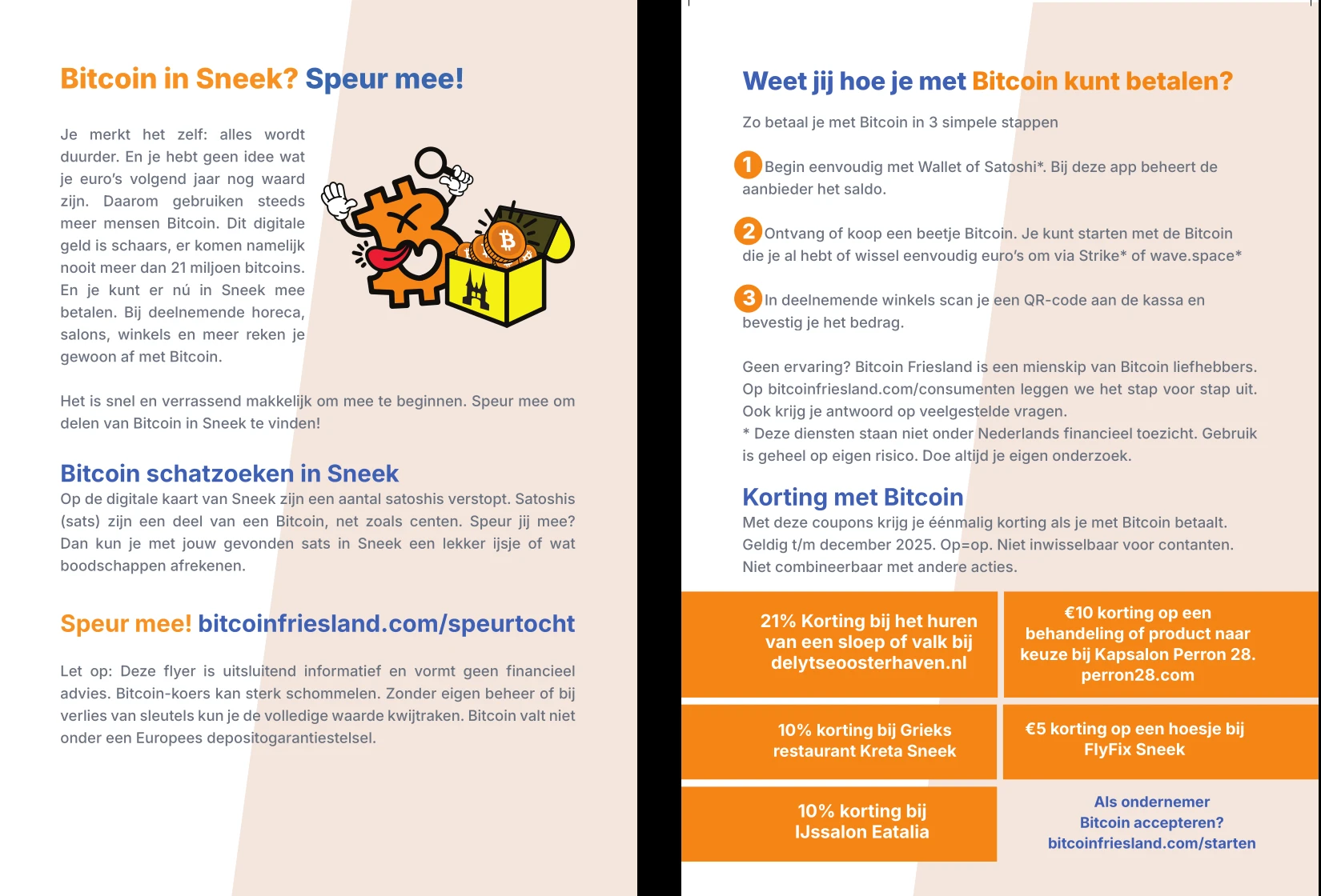 Wandel gezellig mee tijdens de BitcoinWalk in Sneek! Tijdens het praten en wandelen over Bitcoin verspreiden we ook flyers door de brievenbussen in het centrum van Sneek over hoe je kunt betalen met Bitcoin.