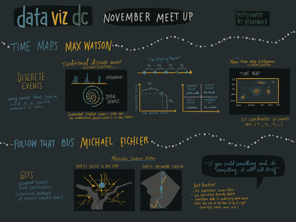 Catherine Madden has captured several DVDC events, some of which are shown here. She will be walking through her evolution as a designer, sharing her best practices for data storytelling, and will go into depth about her favorite data stories. We are excited to hear how she discovered that drawing conversations and data has the power to make groups of people more focused, coherent, and productive.