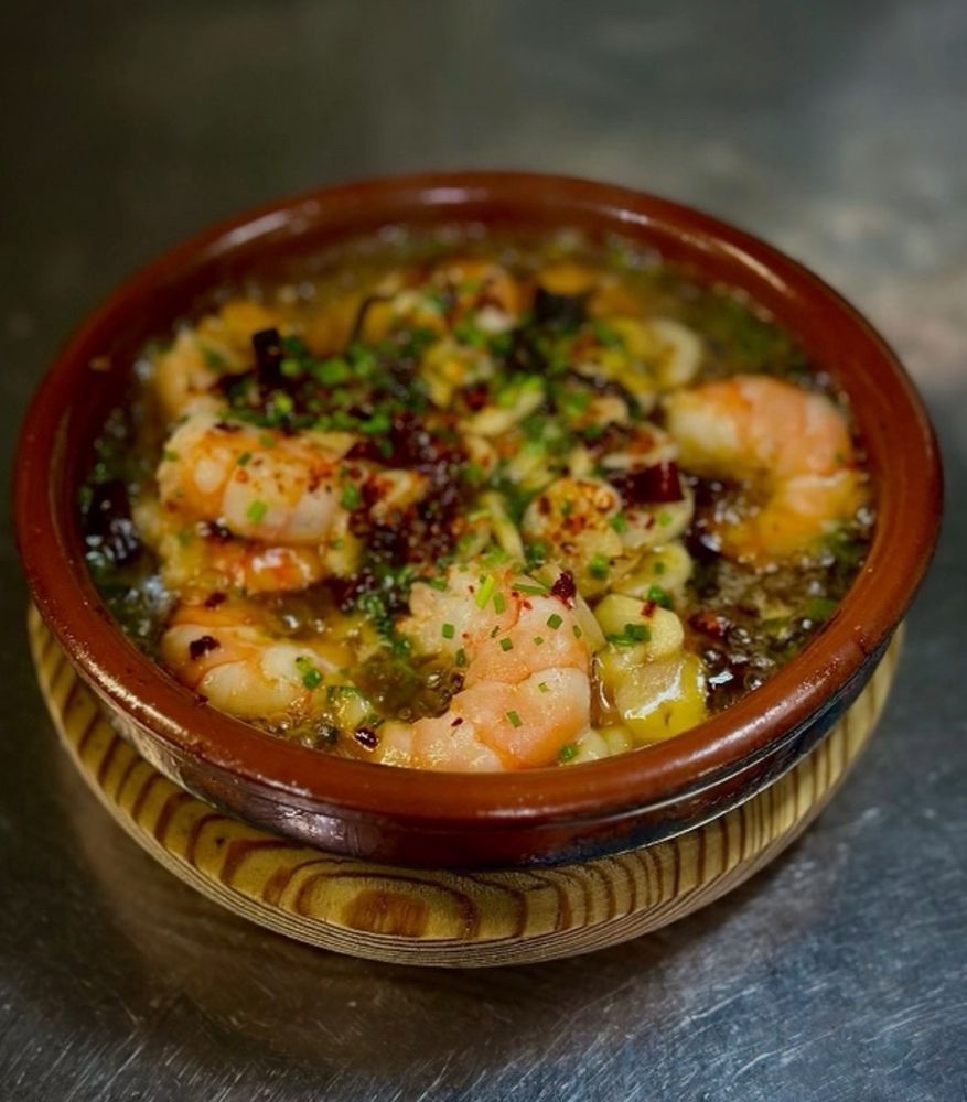 - GAMBAS AL AJILLO - garlic shrimp with white wine, bay leaf, olive oil and toasted bread ๐ฆ๐ง๐๐ฅ