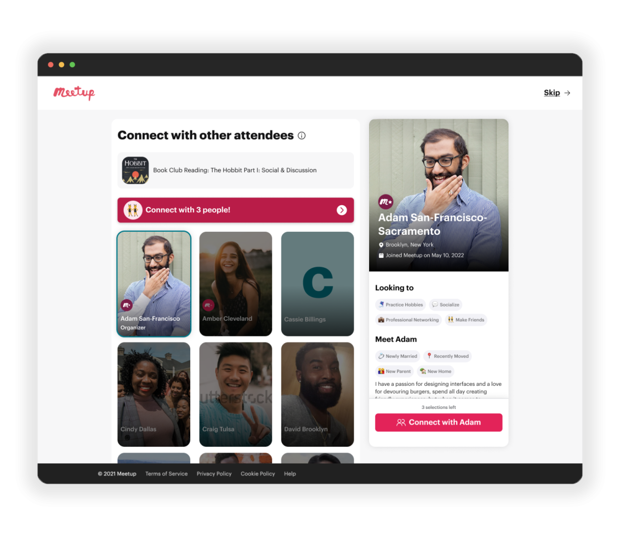 Friendship is at the heart of what we do at Meetup. That’s why we launched Connections, a new tool to help you stay in touch with other Meetup members and attend future events together.